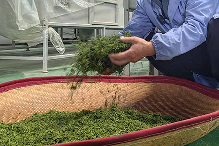 殺青后的茶葉需要進(jìn)行攤涼,讓茶葉的溫度降下來,同時(shí)也讓茶葉中的水分進(jìn)一步散發(fā),為后續(xù)的揉捻做好準(zhǔn)備。