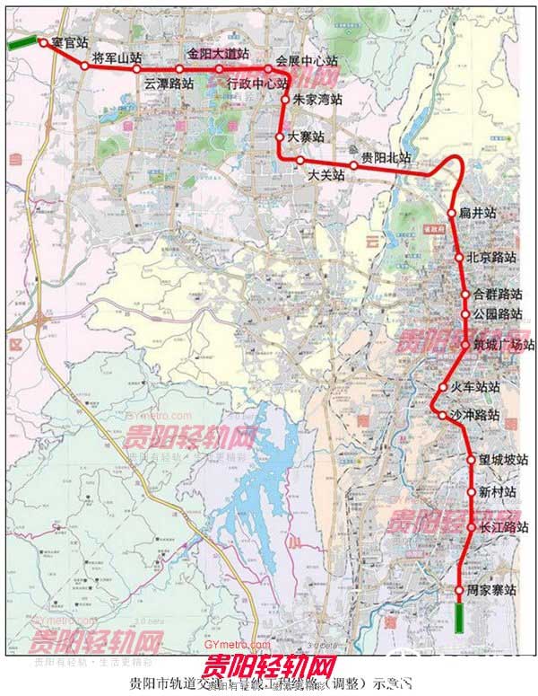 貴陽輕軌1號線全長34.3公里,共設(shè)24座車站、23個區(qū)間、一個車輛段、一個停車場、一個運營控制中心、兩個變電所。老城區(qū)剩余21.9公里土建全面進場工程,共涉及14站14區(qū)間及竇官車輛段、小河停車場,分11個工作段組織實施,沿線設(shè)置8個斜(豎)井。 軌道交通1號線經(jīng)過的路線,涉及觀山湖、云巖、南明、經(jīng)開四個城區(qū),共有23個站點,兩城區(qū)站點有,安云路站、北京路站、延安路站、中山路站、人民廣場站、火車站站,沙沖路站,為地下站點,也就是說在老城區(qū),軌道交通1號線全走地下。至于票價,預(yù)計2元起價,1號線全程路費不超過8元。 貴陽地鐵1號線路線圖: 【相關(guān)附件】: ![]() |