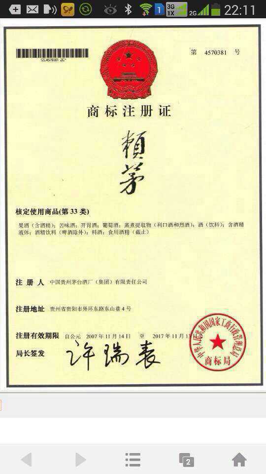 2014年3月15日,茅臺集團就“賴茅”商標使用鄭重聲明,再次強調(diào)“賴茅”(注冊號:4570381;第33類)商標為茅臺集團注冊商標,受法律保護,侵權(quán)必究。
