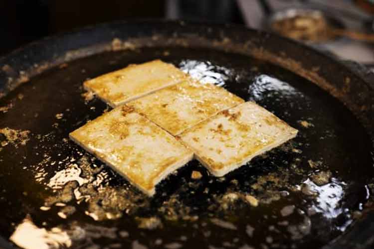 油煎:鍋中倒入適量的油,油熱后放入臭豆腐,用小火煎至兩面金黃。煎好的臭豆腐外皮酥脆,內里嫩滑,可以根據個人口味加入蒜泥、醬油、醋等調料進行調味,別有一番風味。